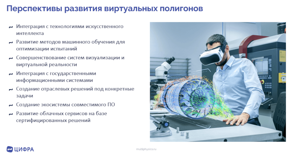 В качестве площадки проведения цифровых испытаний выступает виртуальный полигон – совокупность вычислительных мощностей (рабочие станции или вычислительный кластер), специализированного программного обеспечения и настроенных цифровых шаблонов для проведения тех или иных видов цифровых испытаний для различных типов оборудования.