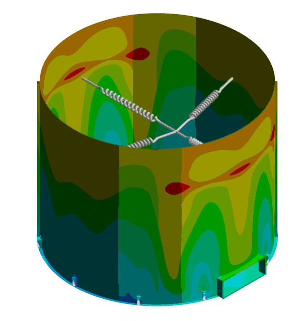 Вместе с тем, рассматриваемый в данной статье проект имел свои особенности. В отличие от традиционных строительных и опорных конструкций, флотационная машина представляет собой ёмкость, частично заполненную жидкостью. При расчётах сейсмостойкости таких конструкций помимо прочих нагрузок необходимо учитывать и колебания жидкости внутри камеры, которые могут существенно влиять на распределение нагрузок и общую устойчивость оборудования. Наши специалисты проводят расчёты прочности частично заполненных резервуаров на действие сейсмической нагрузки с учётом колебания жидкости с применением разных методов и программного обеспечения. Подходы, которыми владеют инженеры АО «ЦИФРА», приведены в статье «Сейсмостойкость резервуаров, частично заполненных жидкостью».
