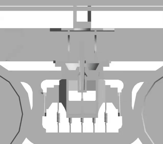 Расчёт выполнен методом конечных элементом в постановке явной динамики. На рисунке ниже приведён пример аварийного поведения закреплённого вагона, при котором происходит слетание кузова вагона с колёсной тележки, сопровождающееся срезанием шкворня и скручиванием надрессорной балки.