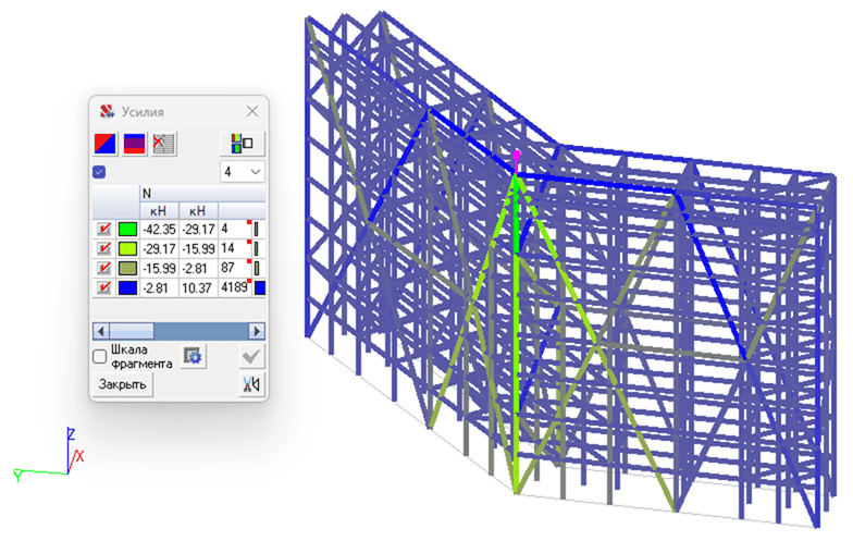 Рисунок 4 – Пример результатов расчёта прочности ЗОК из строительных лесов (фрагмент) на попадание БПЛА.